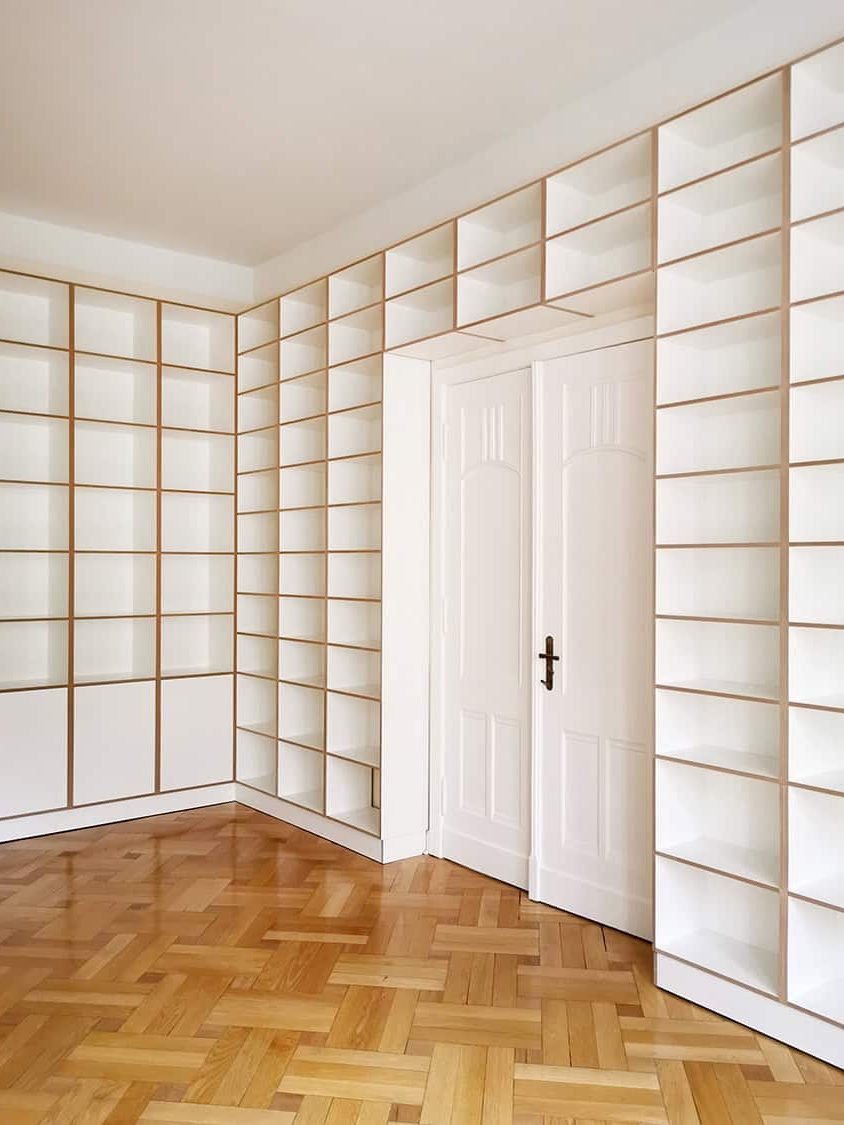 Unsere formschönen Regalwände setzen sich aus senkrechten Modulen zusammen, die bereits fertig montiert geliefert werden.